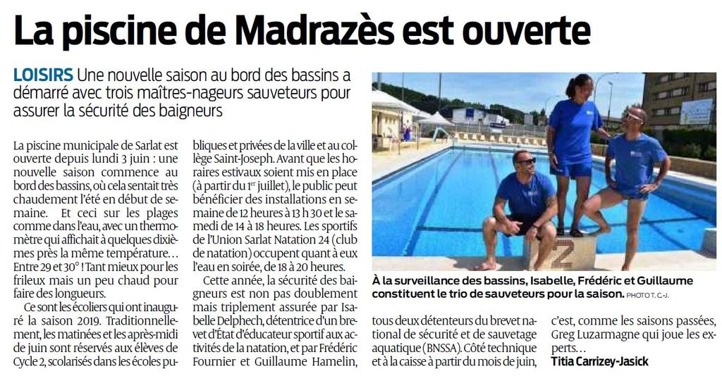 C'est l'heure de la reprise pour le club USN24 à Sarlat avec l'ouverture de la piscine Madazès pour la saison estivale avec toujours l'espoir de voir un jour une piscine couverte se construire pour le bien-être de toute une population.