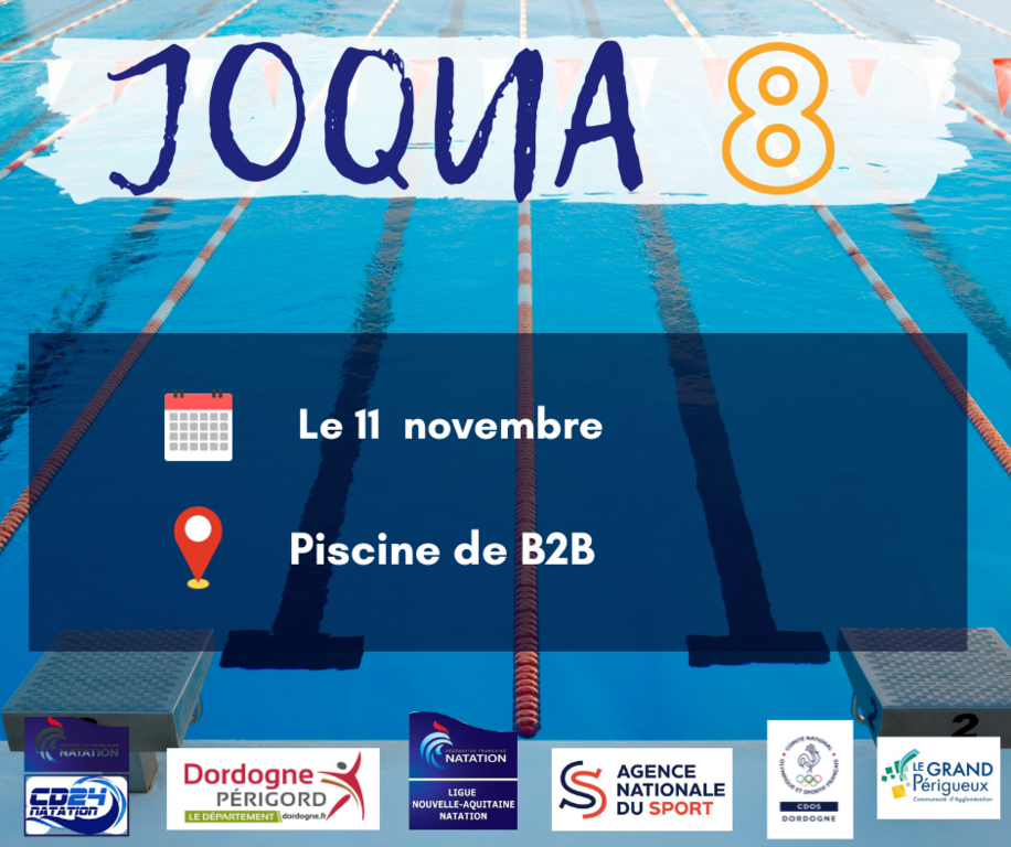 JOQUA ce samedi 11 novembre à la piscine B2B avec 74 nageurs engagés de nos 4 clubs de Dordogne.