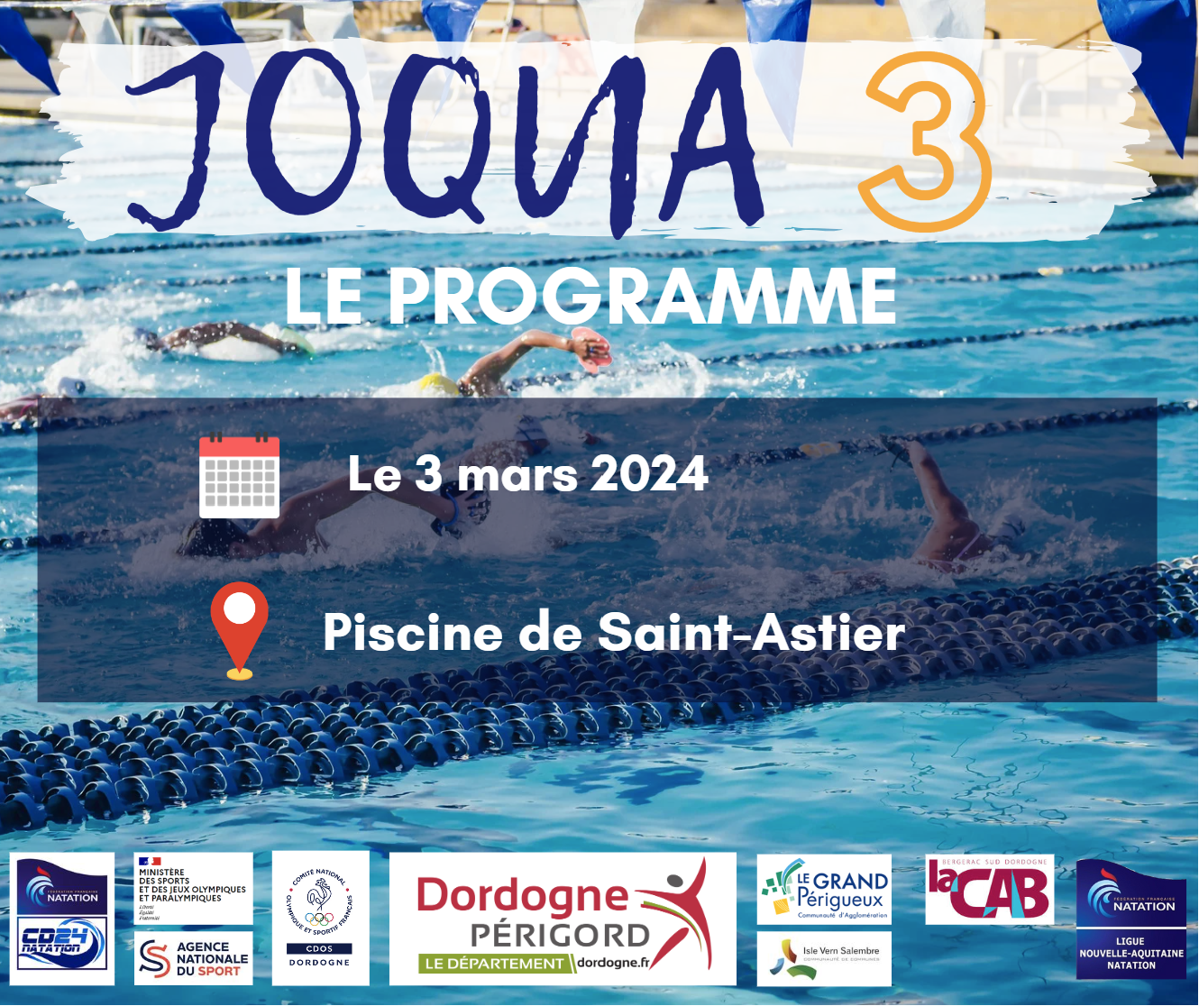 JOQUA 3 ce dimanche 3 mars à St Astier. 54 nageurs seront présents.