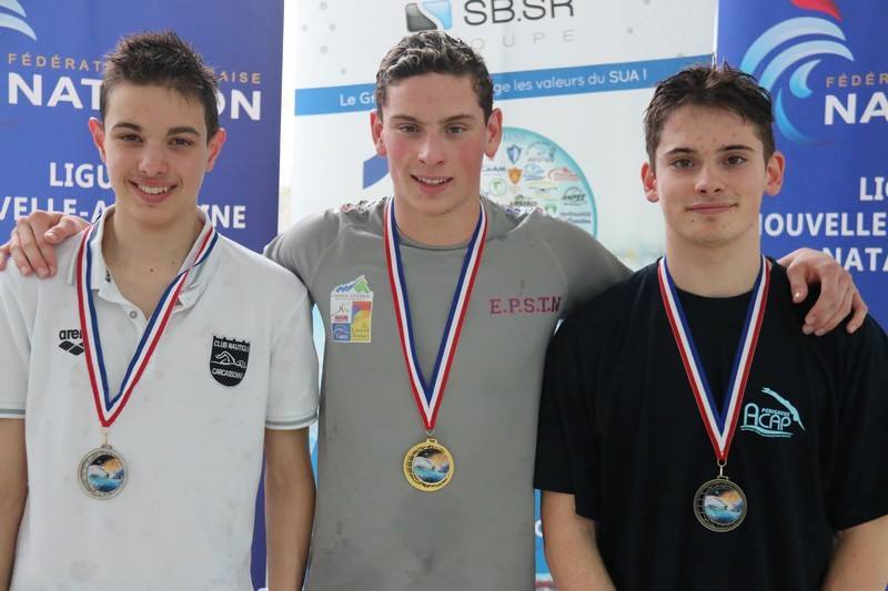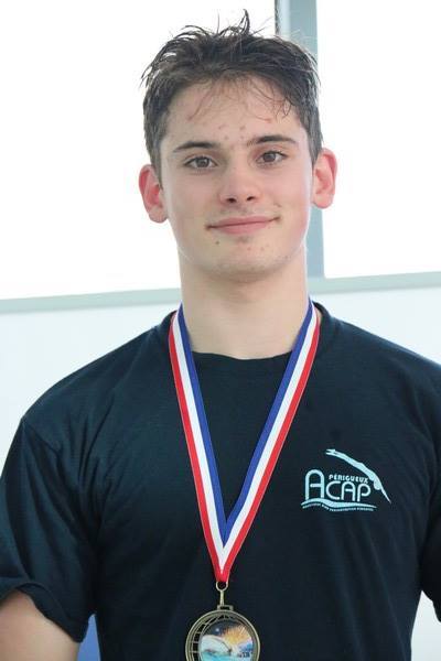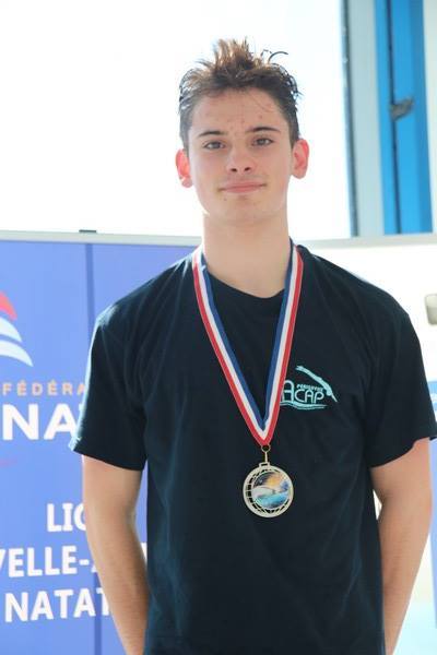 Troisième place, médaille en bronze pour Achille Dujarric sur 100 dos en 1'05"23.