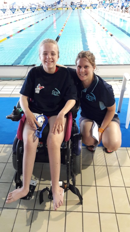 Pour la première fois, Amélie LASSERRE, jeune nageuse handisport de l’Aquatique Club Agglomération Périgueux, a participé aux Championnats de France de Nationale 2 à Saint Malo. Après le premier rendez-vous jeudi 16 pour établir sa classification, selon la procédure établie par la Fédération française Handisport, Amélie se retrouve dans la classée S5 alors qu’elle s'était entraînée et qualifiée selon la catégorie S3 ...lors des régionaux à Bordeaux au printemps. Une déception qui va redoubler la motivation de notre jeune nageuse de 13 ans qui en a vu d’autres. Après avoir fièrement représenté le club avec son entraîneur, Cindy Gaillard, lors du traditionnel défilé des participants en ouverture de la compétition le vendredi, Amélie a littéralement pulvérisé son meilleur temps sur 50 dos en 2’16. Une performance qui lui vaudra de participer à la finale de l’après-midi pour terminer 4ème. Le samedi fût plus timoré car le départ du 50 NL a été sifflé alors qu’Amélie n’était pas tout à fait en place. Il n’empêche que sa détermination et son courage lui ont permis de réaliser 2’19’’