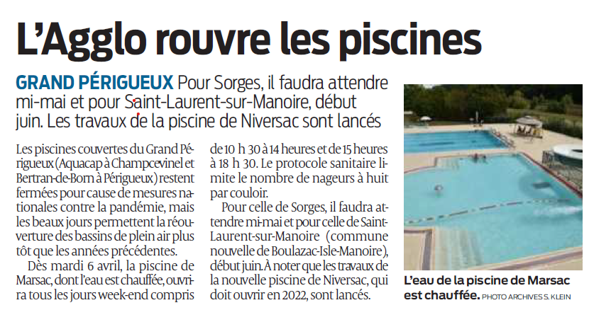 Grand Périgueux: L'agglo rouvre les piscines